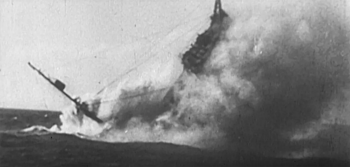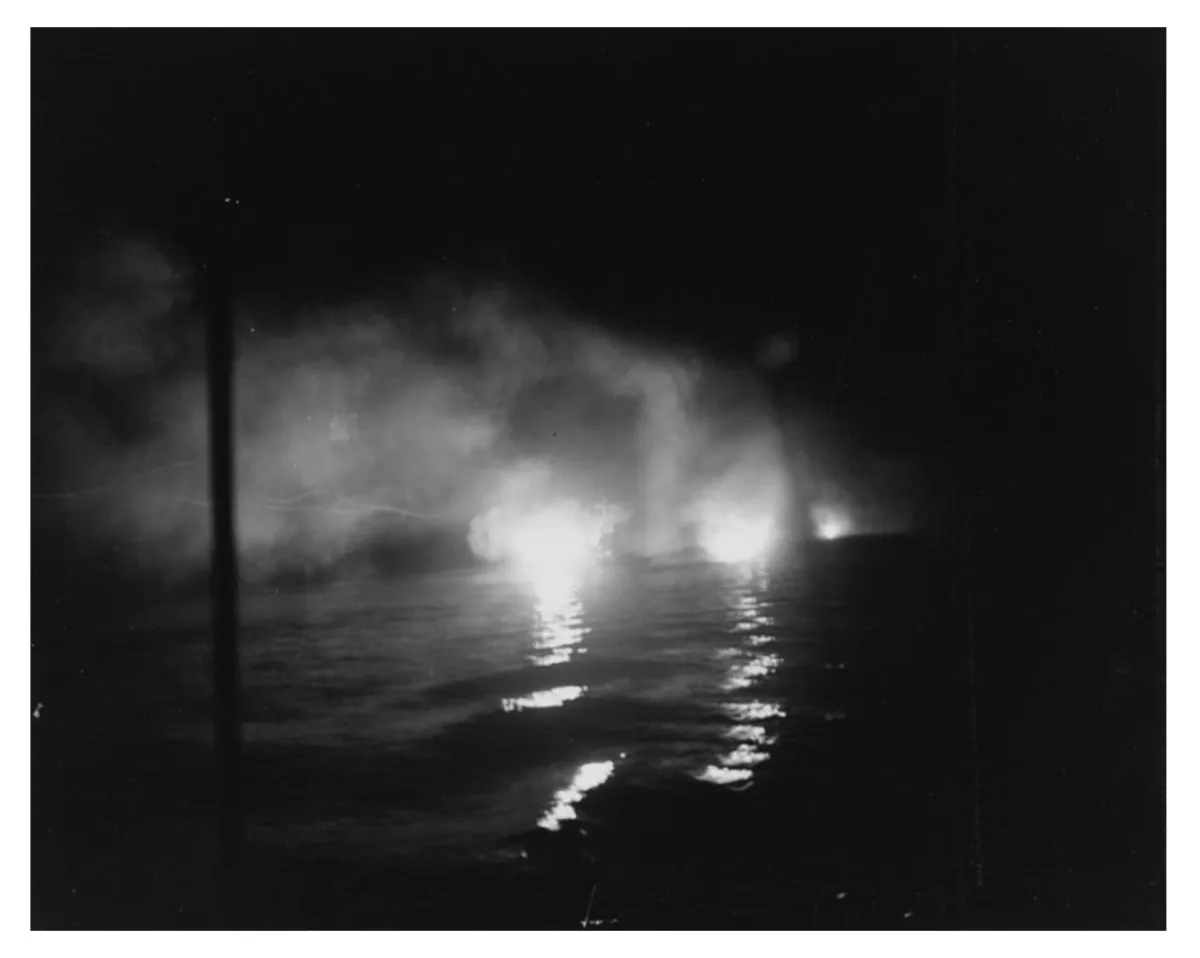 The gasoline barrels that were loaded on deck immediately took fire and the crew had to abandon ship. The attack continued even when they were in the lifeboats.